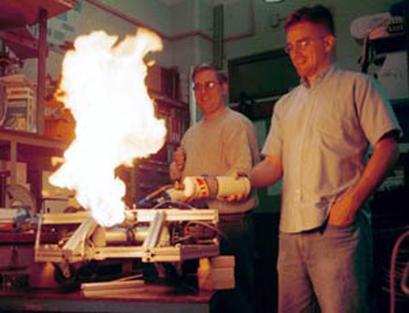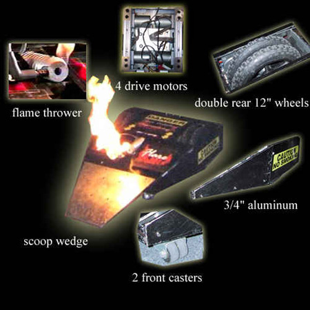 front mounted flame thrower and scoop wedge. This robot was built by Aaron Trask and Mariusz